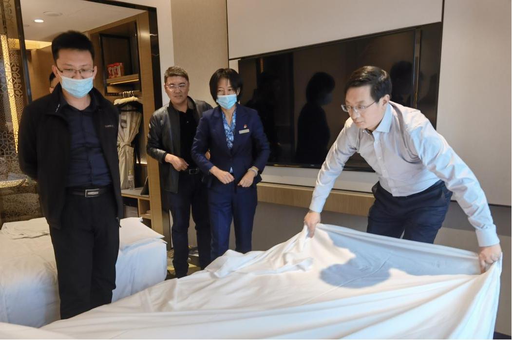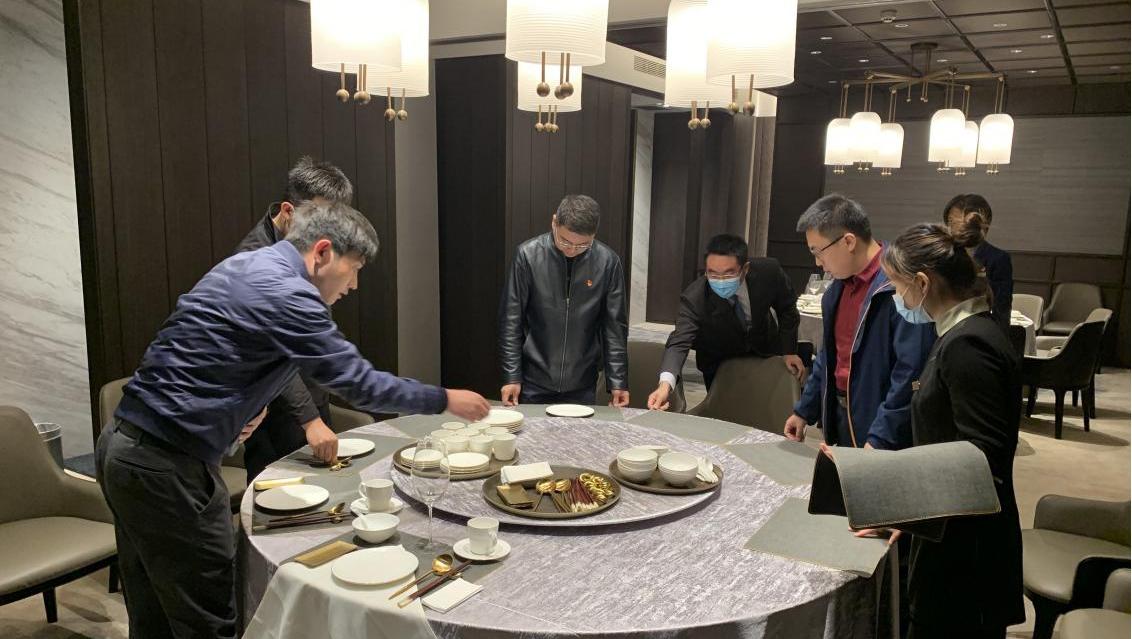 二支部在泉城大酒店參觀酒店實施5S精細化管理的工作場景,詳細了解廚房、客房、設備間、員工餐廳等不同崗位的工作流程,經(jīng)過簡短的崗前培訓,支部成員分別到客房、餐廳參加打掃客房、餐具擺臺等服務項目。