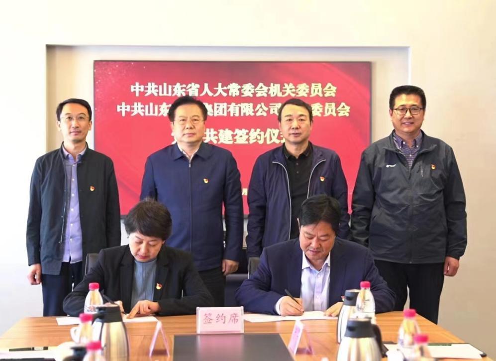 山東省人大常委會機關黨委專職副書記金亞英,山東文旅集團黨委副書記、工會主席、機關黨委書記季將代表雙方進行簽約。山東省人大常委會辦公廳離退休干部處處長趙擁軍、機關黨委副書記范寶亮,山東文旅集團黨委委員、副總經理楊富琛,董事會秘書兼辦公室主任韓玲玲,組織人力資源部負責人參加簽約儀式。