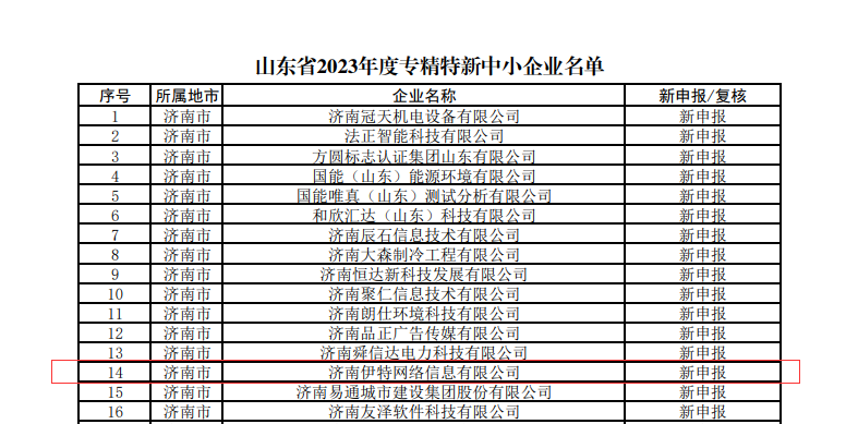 5月10日,山東省工業(yè)和信息化廳公布山東省2023年度專精特新中小企業(yè)名單,經(jīng)過(guò)層層嚴(yán)格遴選,山東文旅傳媒集團(tuán)旗下濟(jì)南伊特網(wǎng)絡(luò)信息有限公司(魯網(wǎng))成功被認(rèn)定為山東省專精特新中小企業(yè)。