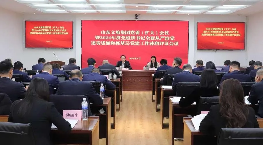 1月21日,山東文旅集團召開黨委(擴大)會議,分別聽取2024年度黨組織書記全面從嚴治黨述責述廉和抓基層黨建工作述職。集團黨委書記、董事長丁藝主持會議并講話,省國資委組織與統戰工作處有關同志到會指導。