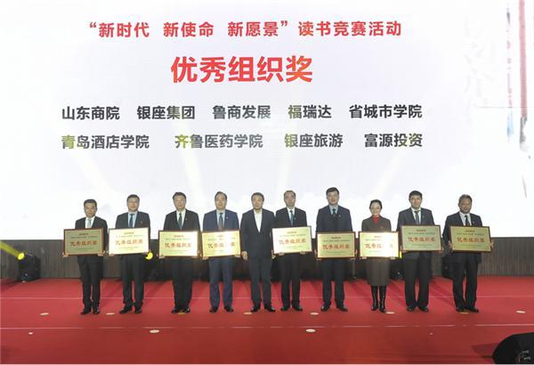 姬德君在致辭中表示,今年是中國(guó)共產(chǎn)黨成立100周年,在全黨開(kāi)展黨史學(xué)習(xí)教育意義重大。魯商集團(tuán)、國(guó)欣文旅具有濃厚的文化基因和學(xué)習(xí)氛圍,特別是此次將企業(yè)傳統(tǒng)的讀書(shū)競(jìng)賽活動(dòng)和黨史學(xué)習(xí)教育結(jié)合起來(lái),是對(duì)黨中央決策部署和省委工作要求的積極響應(yīng)。高洪雷書(shū)記是著名的歷史紀(jì)實(shí)文學(xué)作家,其著作充滿(mǎn)了對(duì)歷史和現(xiàn)實(shí)的思考,立意高遠(yuǎn),文學(xué)素養(yǎng)強(qiáng),閃耀著人性的光輝。相信此次讀書(shū)競(jìng)賽活動(dòng)一定會(huì)實(shí)現(xiàn)文學(xué)性與現(xiàn)實(shí)性,社會(huì)效益與經(jīng)濟(jì)效益的有機(jī)融合,對(duì)提高全體職工的人文素質(zhì)、創(chuàng)建書(shū)香企業(yè)必將起到非常重要的促進(jìn)作用。在啟動(dòng)儀式上, 2020“新時(shí)代 新使命 新愿景”讀書(shū)競(jìng)賽活動(dòng)頒獎(jiǎng)典禮也同步舉行。