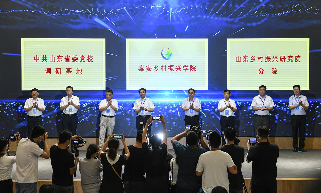 7月24日,泰安鄉村振興學院、山東省委黨校調研基地、山東鄉村振興研究院分院揭牌暨“黨建引領鄉村振興”泰安論壇舉辦。省委組織部黨員教育中心主任馬文勝,魯商集團黨委書記、董事長兼國欣文旅黨委書記、董事長高洪雷,泰安市委副書記曲鋒出席活動并致辭,泰安市委常委、組織部長劉泮英,副市長張穎分別主持有關活動。