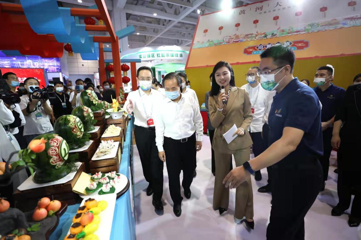 16日上午,開幕當(dāng)日,省委常委、宣傳部部長白玉剛等領(lǐng)導(dǎo)參加開幕式并重點(diǎn)參觀了紅色、沿黃文旅主題展區(qū)。在展區(qū)內(nèi),與內(nèi)蒙古展團(tuán)展商、山東文旅魯菜館非遺傳承人進(jìn)行交流。