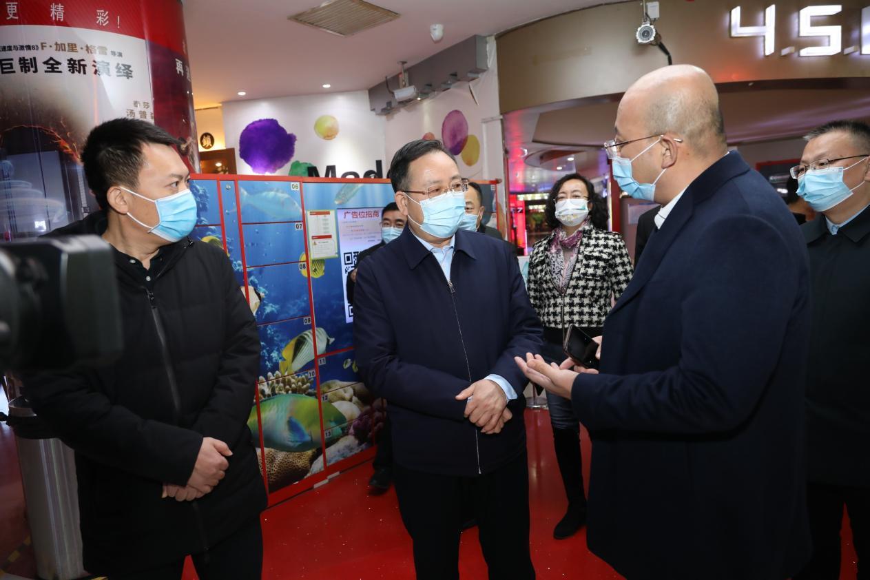 1月29日,山東省委宣傳部副部長(zhǎng)、省電影局局長(zhǎng)程守田一行到山東文旅集團(tuán)旗下影城和諧廣場(chǎng)店督導(dǎo)檢查安全生產(chǎn)和疫情防控工作。省委宣傳部電影處處長(zhǎng)尹永海,濟(jì)南市文化和旅游局副局長(zhǎng)蘇文,山東文旅集團(tuán)黨委委員、副總經(jīng)理孫超,山東文旅投資集團(tuán)黨委書(shū)記、董事長(zhǎng)王化龍等陪同檢查。