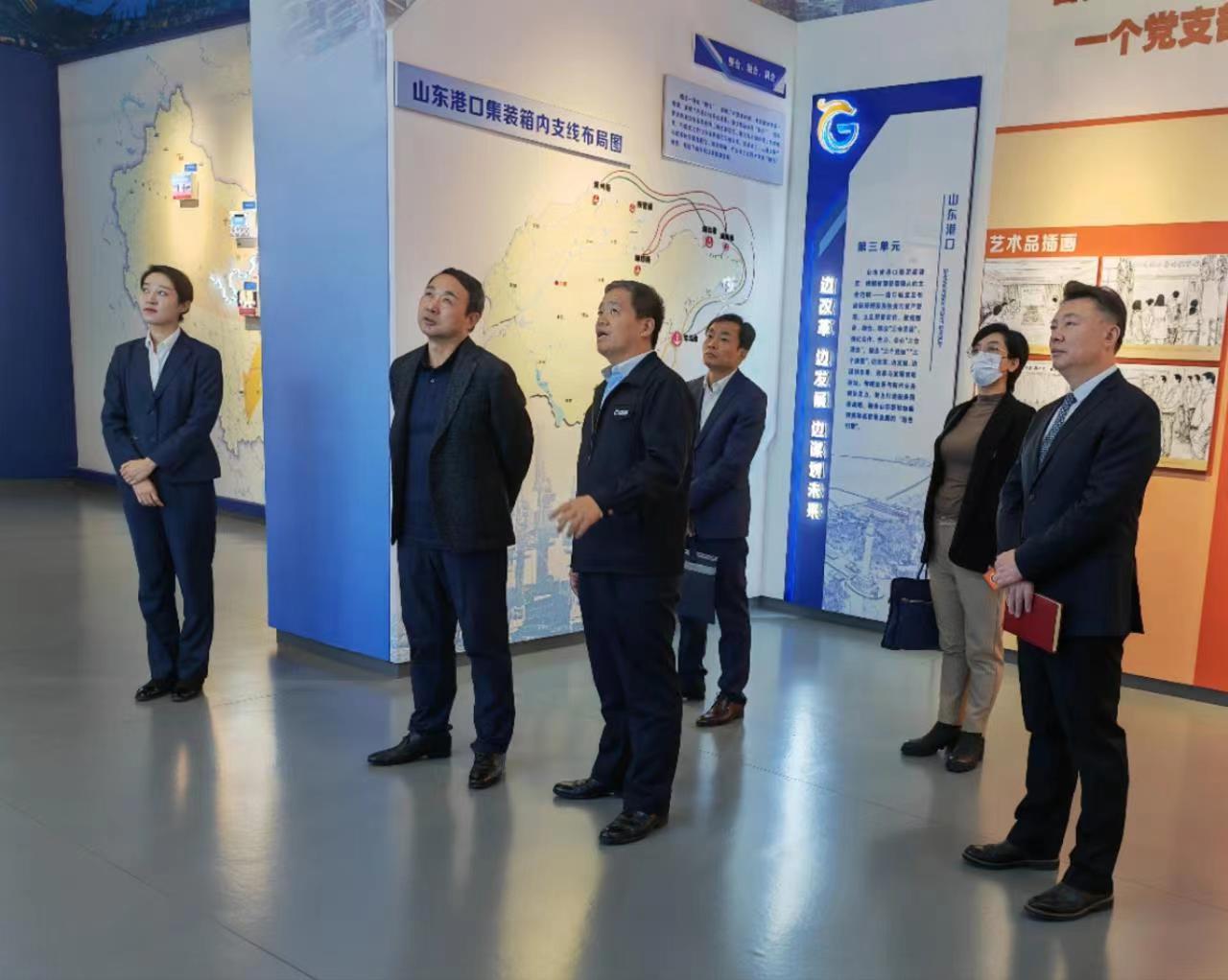 高洪雷一行首先參觀了山東省港口集團展廳,聽取有關情況介紹,詳細了解企業發展歷程、業務范圍、市場布局、黨建工作及企業文化等。