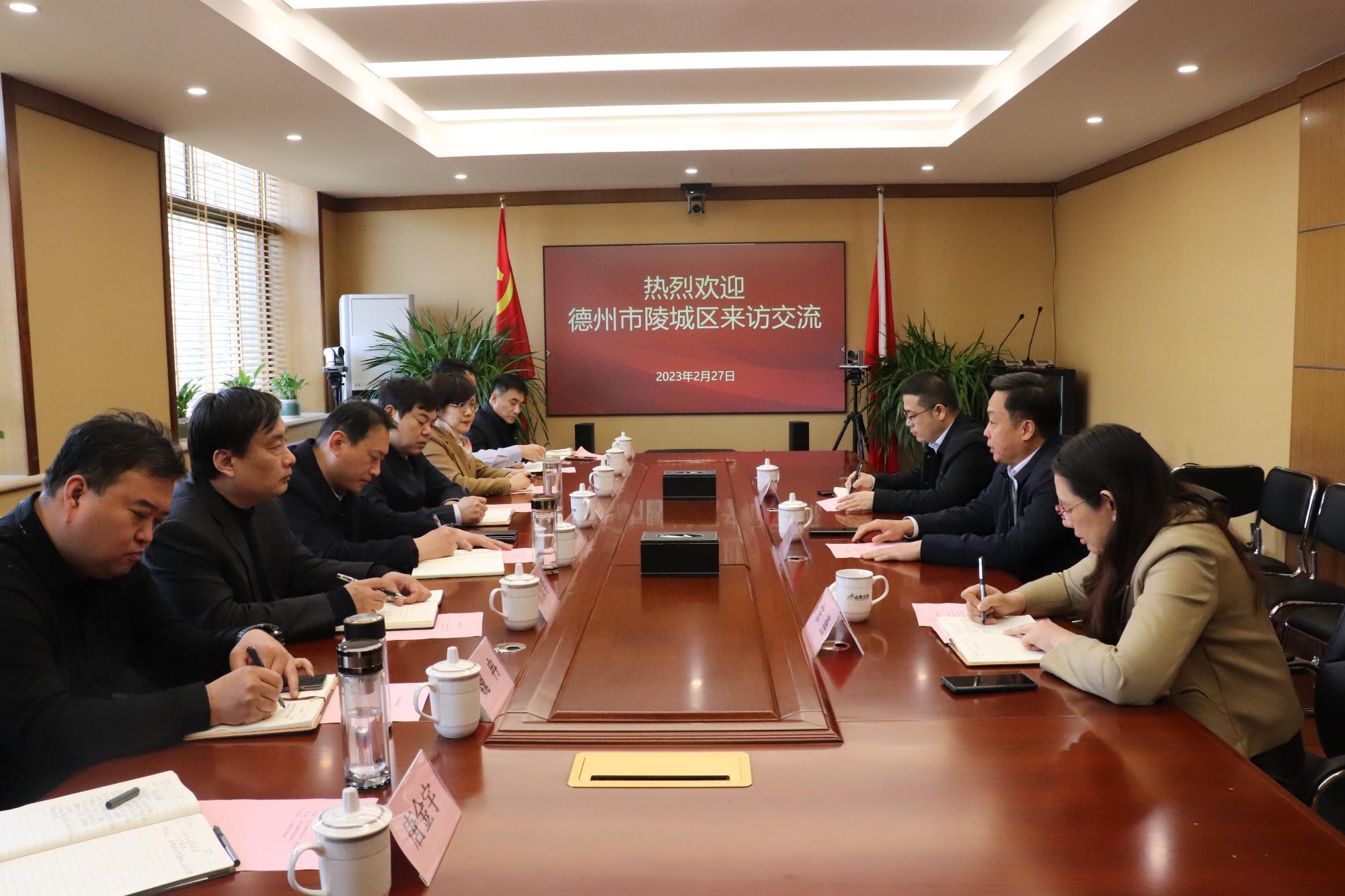 2月27日,山東土地鄉村振興集團總經理、德州市陵城區“四進”工作支隊隊長劉光東一行到山東文旅集團座談交流,集團黨委委員、副總經理喬衛東會見。
