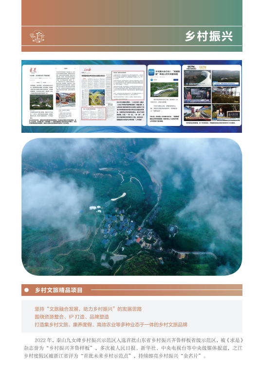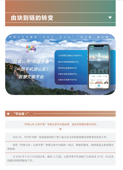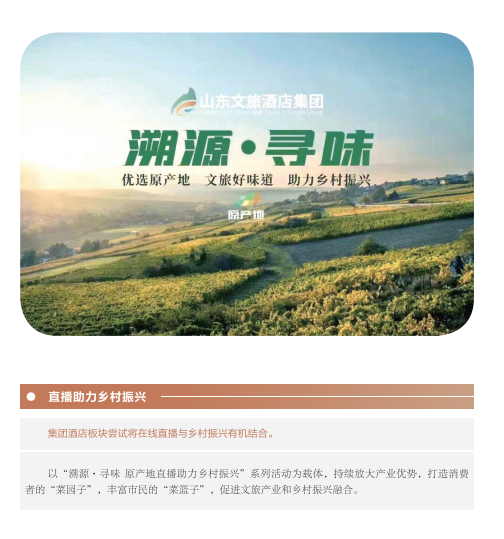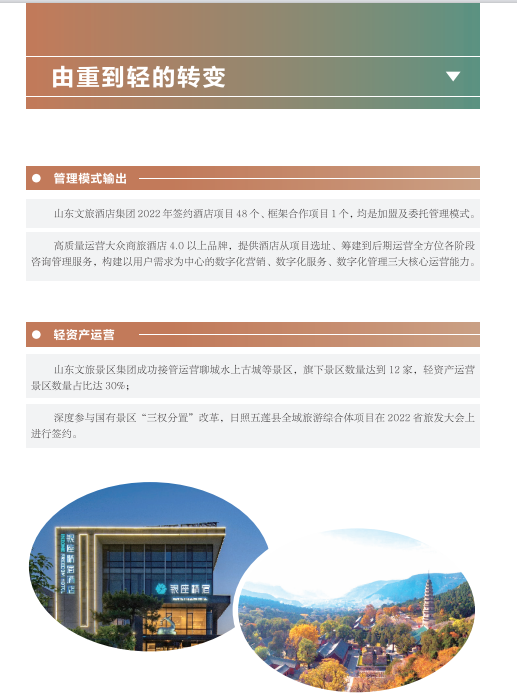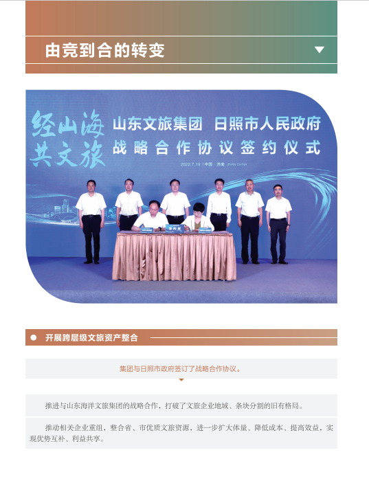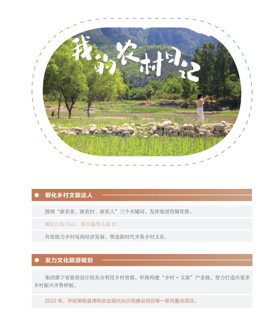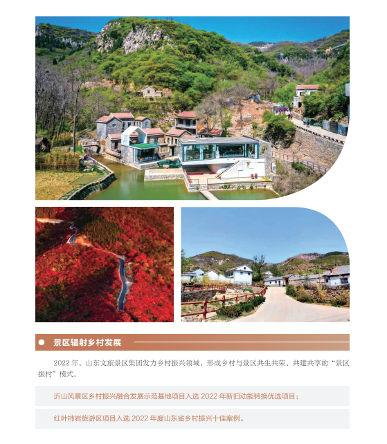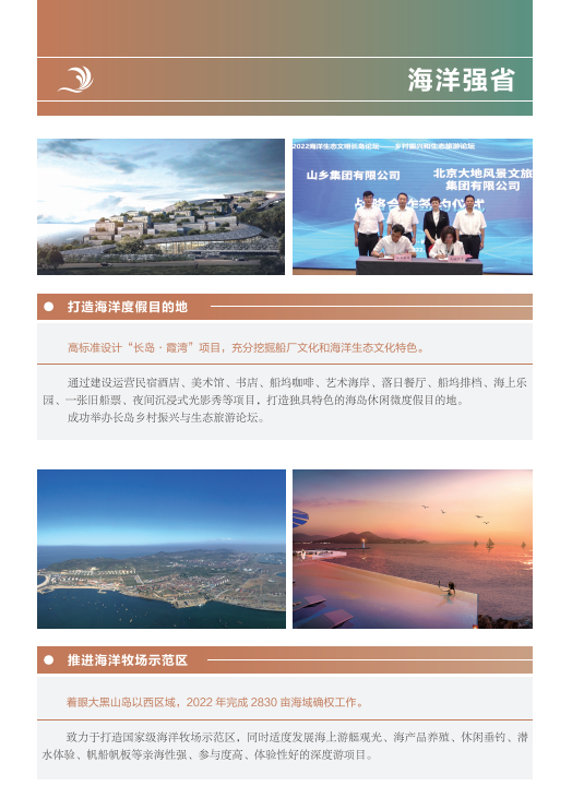近年來,山東文旅集團秉承“服務山東大局、服務人民大眾”的國企使命,積極履行社會責任。認真學習貫徹黨的二十大精神,以黨建為引領,持續提升企業管理水平;高度重視綠色低碳高質量發展,努力在鄉村振興、海洋強省、黃河戰略、山東手造“四篇文章”等方面發揮優勢、有所作為,打造泰山九女峰鄉村振興示范區等系列樣板工程;克服疫情沖擊,謀求差異化發展,推動由重到輕、由塊到鏈、由競到合“三個轉變”;組織豐富多彩文化活動,開展典型選樹,關愛員工發展。