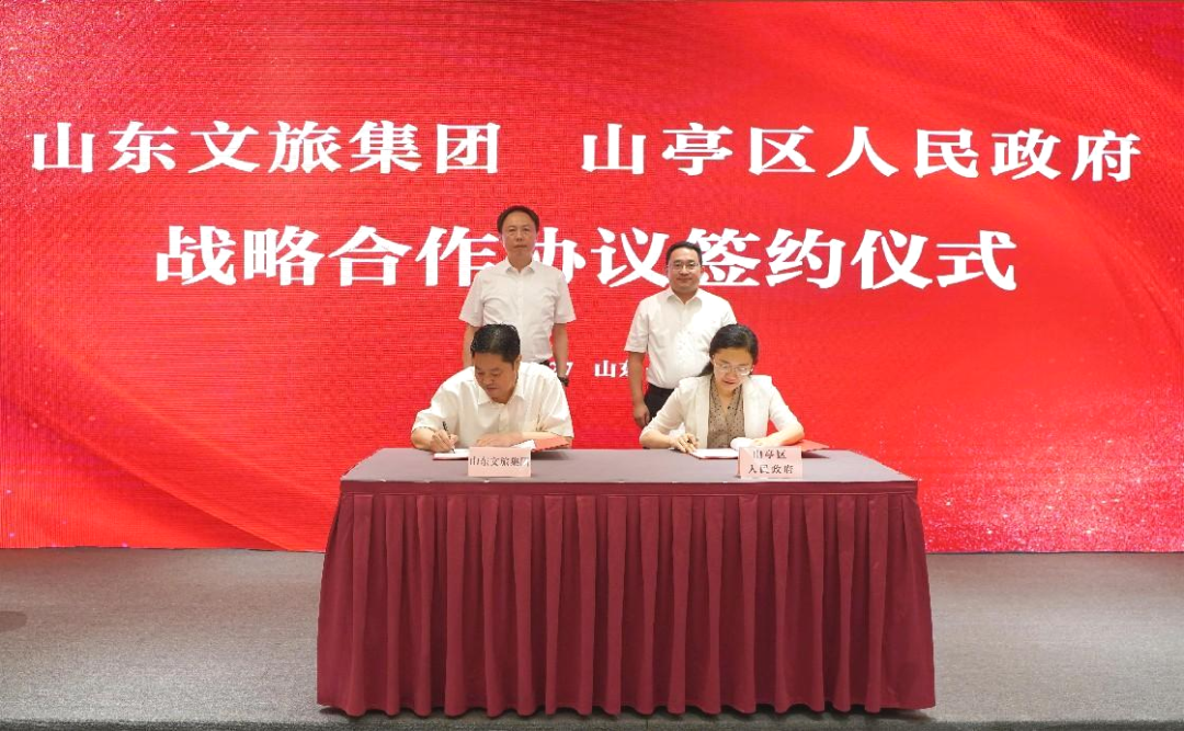 7月27日,山東文旅集團與山亭區人民政府戰略合作協議簽約儀式在濟南舉行。山東文旅集團黨委書記、董事長丁藝,山亭區委副書記、區長劉洪鵬出席并講話。山東文旅集團黨委副書記、工會主席季將主持。