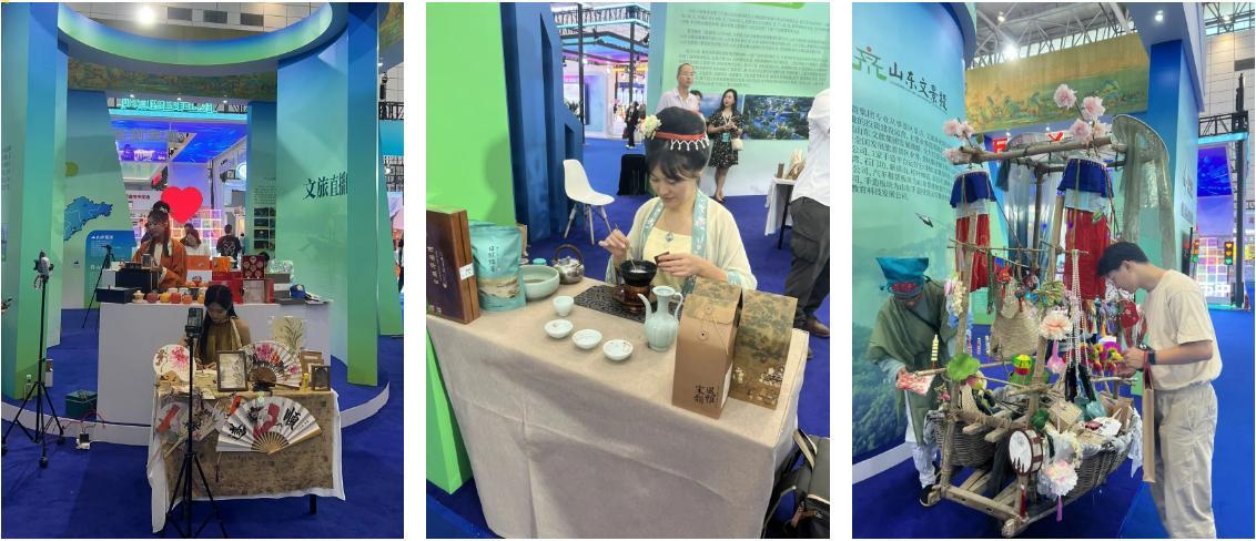 山東文旅景區投資集團以山東手造為展示重點,其所屬山東手造投資運營集團是省委、省政府、省委宣傳部、省文旅廳共同指導下成立的“山東手造”區域共用品牌運營平臺,作為“山東手造”研發、展示、策劃、銷售的省級平臺,致力于培育“山東手造”新產品、新模式、新業態,服務打造全省“山東手造”千億級產業集群。本次展示,匯聚了龍山小米、泰尚黃精產品、堯舜牡丹系列產品、和暢新梅茶具等多重特色山東元素,更有宋代點茶項目和從北宋“穿越”而來的賣貨郎等你把好物帶回家。