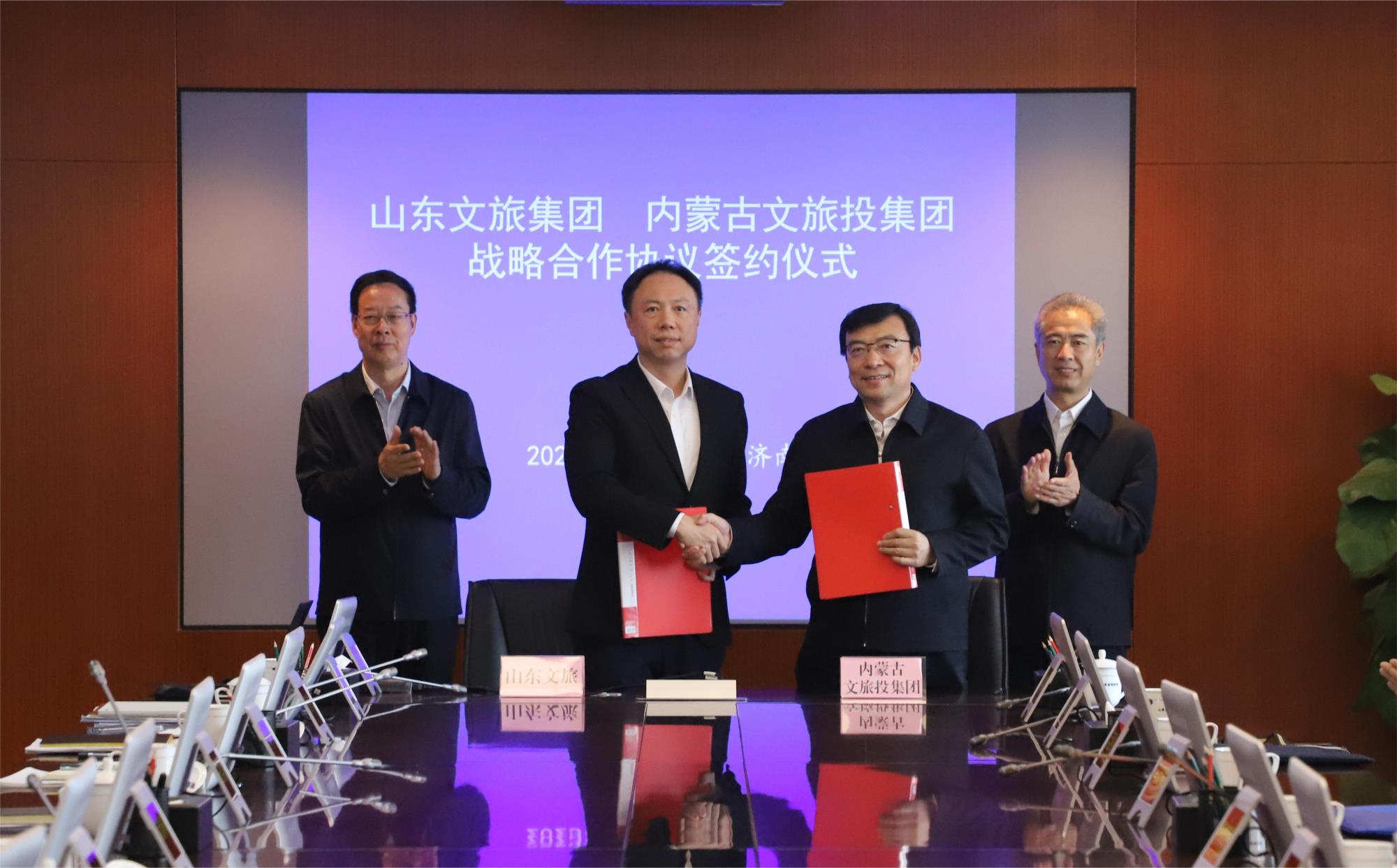 會前,山東文旅集團同內蒙古文旅集團在山東省國資委同內蒙古國資國企座談會上簽訂戰(zhàn)略合作協(xié)議,雙方將基于各自核心競爭力,依托兩地豐富的自然和文化旅游資源,在景區(qū)管理、酒店運營、定制旅行、數(shù)發(fā)科技、鄉(xiāng)村振興等領域積極探索綜合服務新模式。
