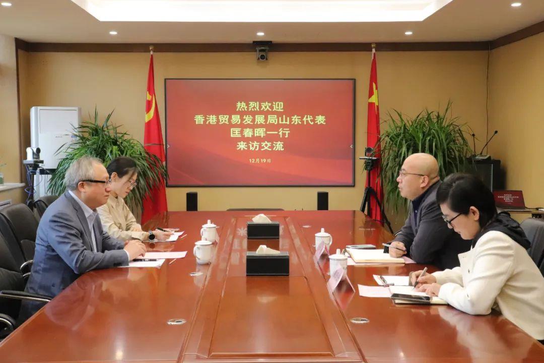 12月19日,香港貿易發展局山東代表匡春暉一行到山東文旅集團座談交流,集團黨委委員、副總經理孫超會見。