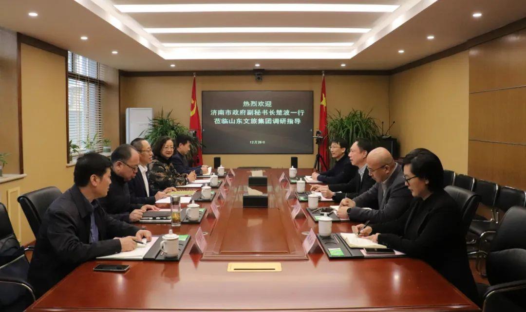 12月28日,濟南市政府副秘書長楚波一行到訪山東文旅集團,集團黨委書記、董事長丁藝參加座談。