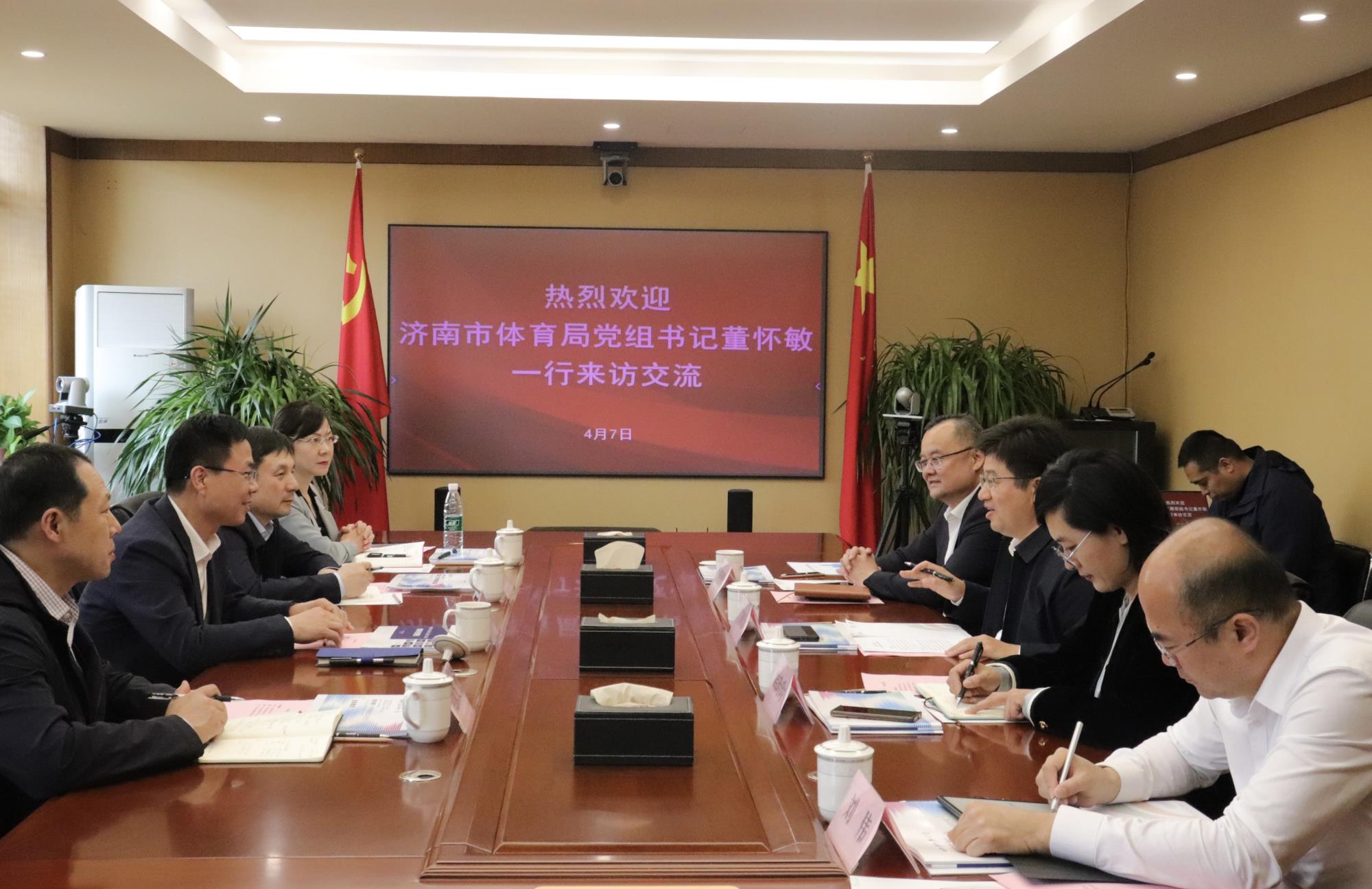 4月7日,濟(jì)南市體育局黨組書記董懷敏率隊(duì)到訪山東文旅集團(tuán),集團(tuán)黨委副書記、董事、總經(jīng)理門家春會見。