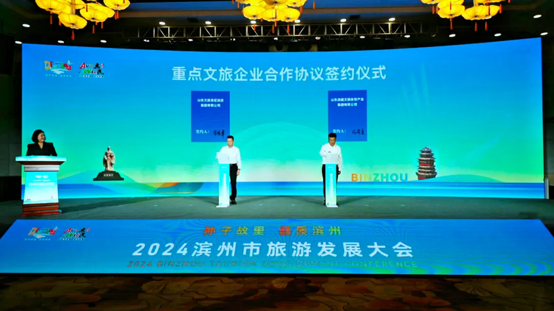 大會現場,舉辦了重點項目推介及簽約活動,山東文旅景區集團與山東濱盛文旅體育產業集團簽訂戰略協議,標志著雙方在文化旅游領域的深度合作已步入全新階段,共同邁向了互利共贏、協同發展的新時代,攜手共創合作發展的新篇章。