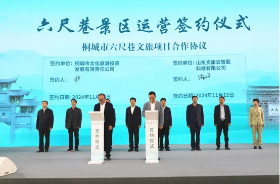 11月12日,山東文旅集團旗下文旅云公司與桐城市文化旅游投資發展有限公司在桐城舉行六尺巷景區運營簽約儀式。山東文旅集團黨委副書記、董事、總經理門家春出席簽約儀式并致辭。安慶市委常委、統戰部部長、市委秘書長徐雄出席簽約儀式。桐城市委書記章周中出席簽約儀式并致辭。桐城市委副書記、市長劉存磊主持簽約儀式。