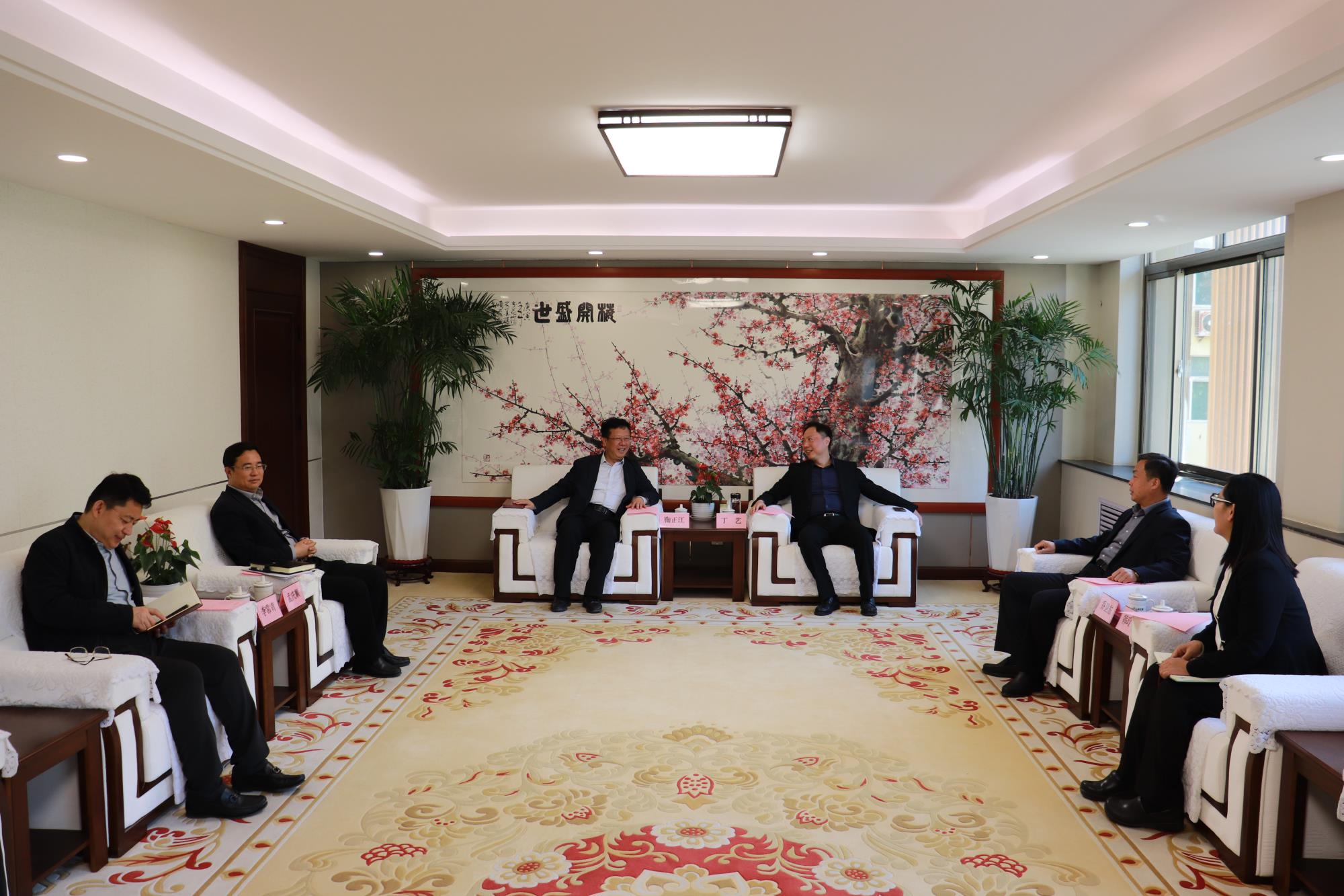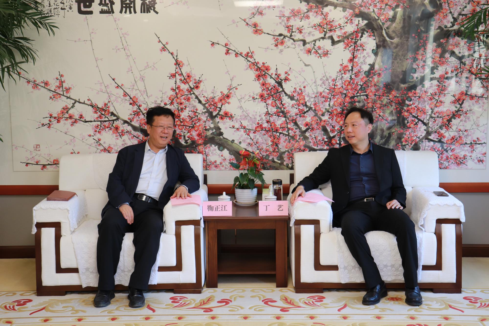 4月15日,濟南市市中區(qū)委書記鞠正江,區(qū)委副書記、區(qū)長孟慶順一行到山東文旅集團座談交流,集團黨委書記、董事長丁藝會見。