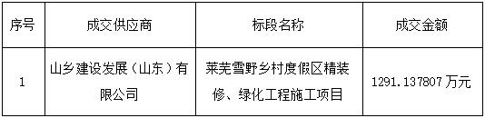 萊蕪雪野鄉村度假區精裝修、綠化工程施工項目中標結果公示
